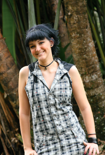Agora note a diferença sutil: é a mesma foto, porém com o enquadramento obedecendo a regra dos terços e um pouco de rotação. Note que os olhos da modelo estão no nó superior esquerdo da foto. A foto fica mais equilibrada e harmônica.