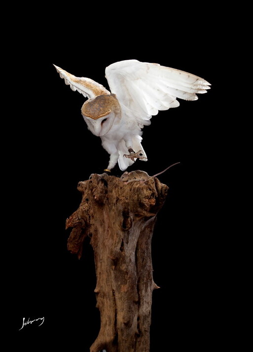 Johnny: Recentemente, em minha palestra no Estúdio Brasil 2010 eu preparei um surpresa para o final: levei uma coruja Suindara e uns camundongos para fazer uma foto e enquanto eu descrevia ao público o tipo de foto que iríamos tentar, a coruja deu um sobrevôo sobre a platéia e pousou em cima da palco e deu um enorme trabalho para ser recuperada… Claro que a foto acabou não rolando…
